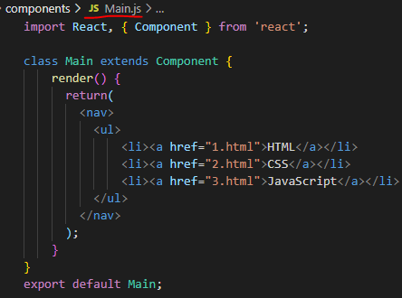 1. src에 컴포넌츠를 담을 components 폴더 만들기 & 그안에 각 컴포넌츠 이름으로 js파일 만들기