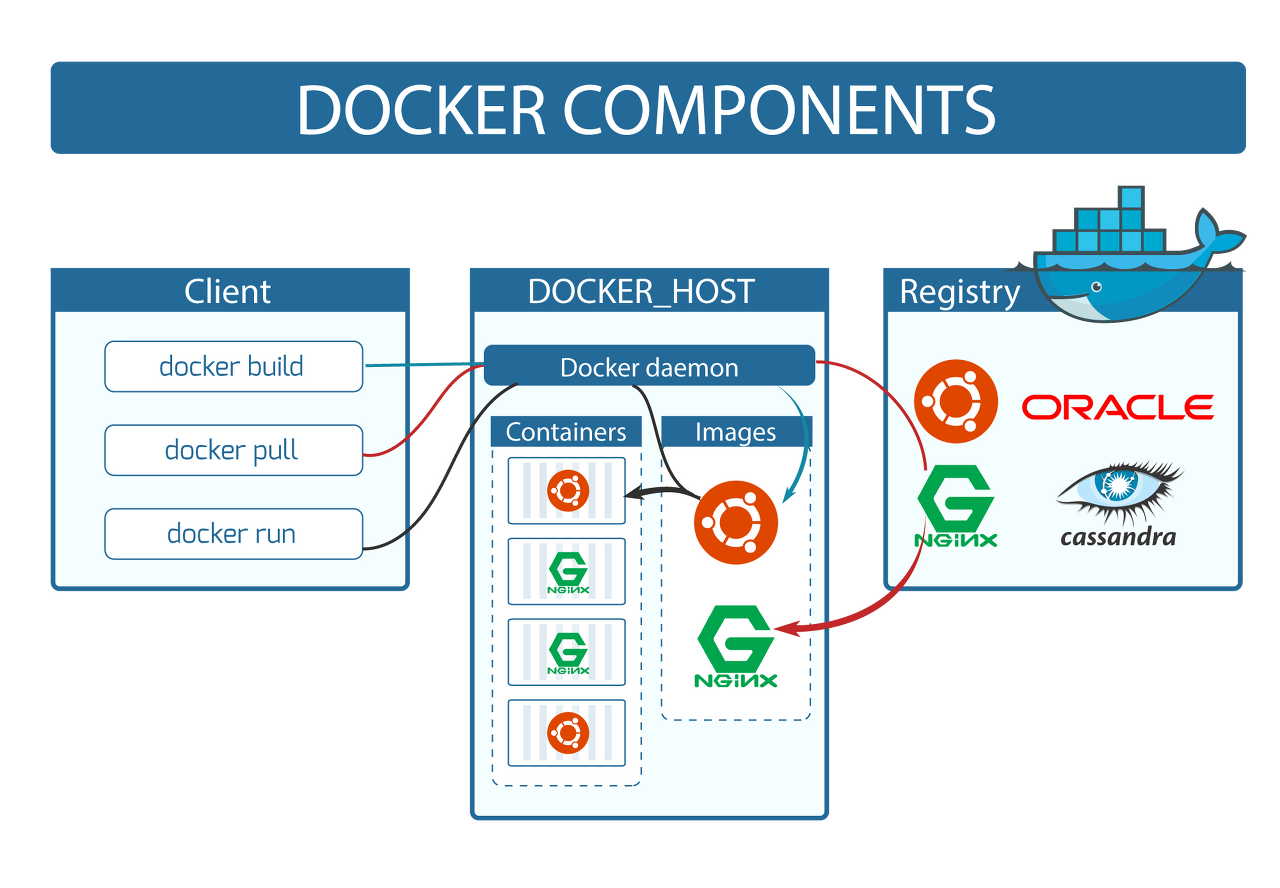 - Client : user가 'docker run' 등의 명령어를 입력하면 이를 Server쪽에 전송하고, 이를 Docker daemon이 수행한다.