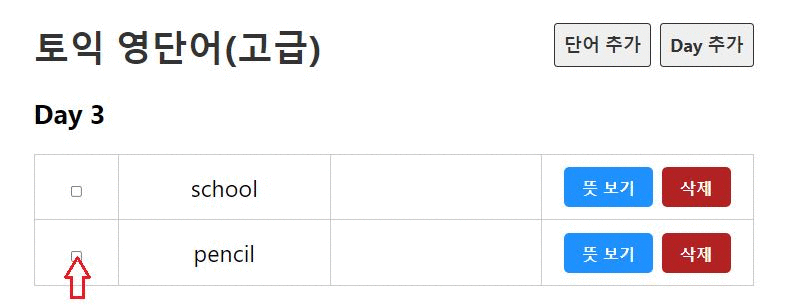 또한 체크박스 기능으로 다 외운 영단어를 체크박스에 표시하면 그 단어가 비활성화 된다.
