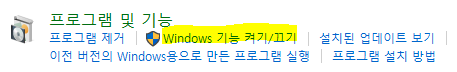 1. [제어판] → [프로그램] → [Windows 기능 켜기/끄기] 를 클릭