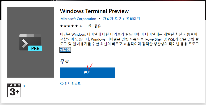 4. 다시 Microsoft store 로 돌아와 Window Terminal preview 검색하여 설치