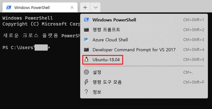 5. 재시작 한번 해주고, 터미널을 켜서 V 버튼을 눌러보면, Ubuntu 가 잘 설치되어 있다.