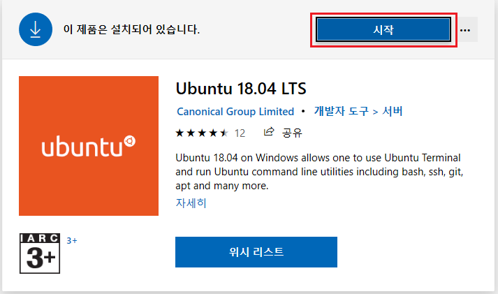3. [윈도우키] - Microsoft store 검색 - ubuntu 검색해서 윈도우 용으로 설치한다.