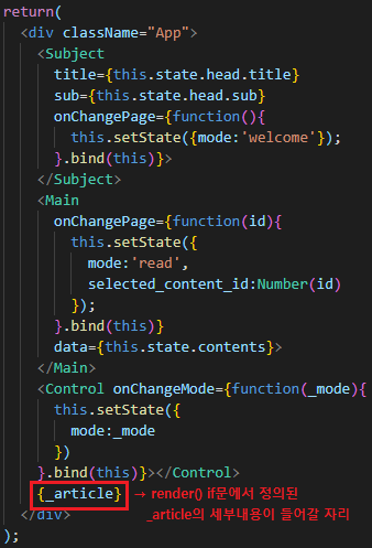 - return 안에 <ReadContent>태그 대신 {_article} 이라는 변수를 준다.