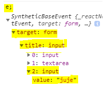 → 즉 e.target.title.value = _title은 같은 값을 가진다는 사실을 알아냄
