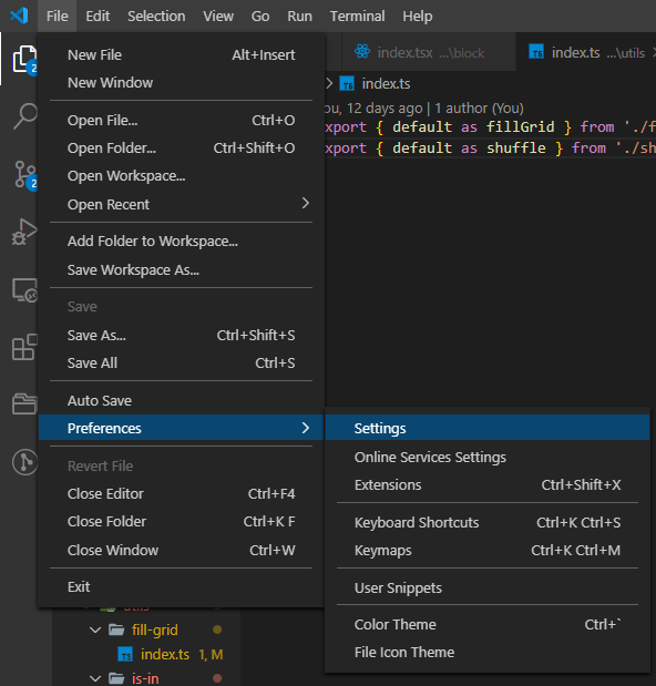 1. [File] - [Preference] - [Settings] 로 들어가자