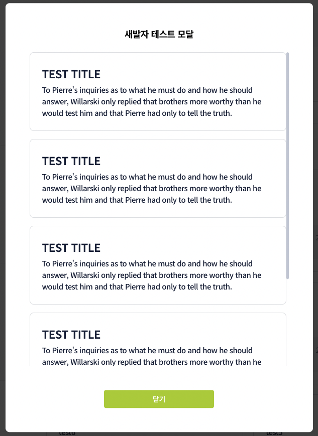 모달 안의 리스트에만 부분적으로 scroll 을 적용하려고 한다.