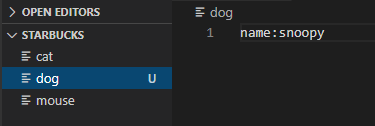 - 프로젝트 폴더에 dog 파일을 추가하고 name을 snoopy로 정했다.