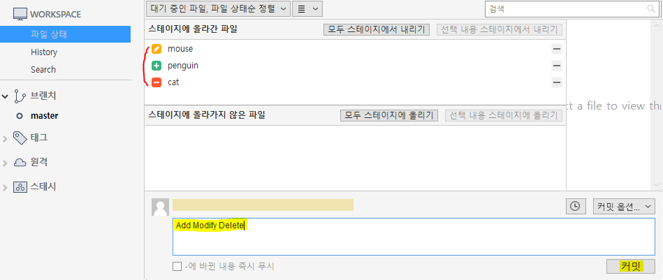 - stage 에 올려주고 커밋명을 간단히 적은 후 커밋을 해주자.