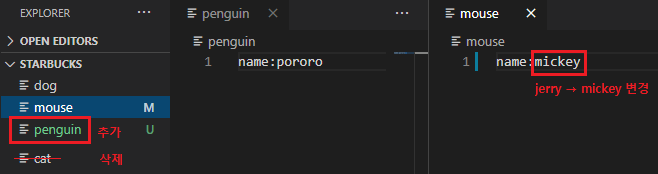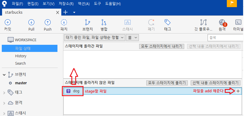 - 소스코드를 열어보면, dog 파일이 업데이트되어 있다. stage에 올려주자