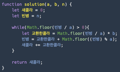 → 빈병 n 개에서 a 병당 b 개로 교환하는 조건으로 어떤 수를 넣어도 계산해주는 함수를 짜야한다.