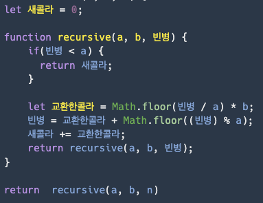 문제를 간단히 설명해보면 다음과 같다. (출처 : 프로그래머스 - 콜라문제)