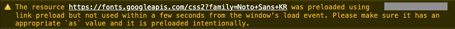 was preloaded using link preload but not used within a few seconds from the window's load event. Please make sure it has an appropriate `as` value and it is preloaded intentionally.