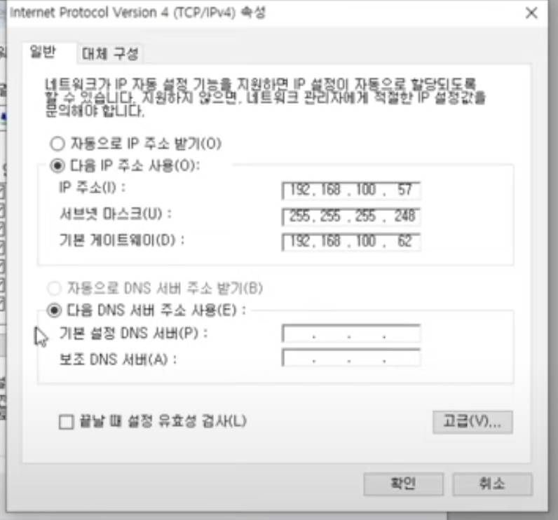 사용가능한 첫번째 IP 주소는 192.168.100.57