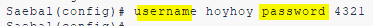 | > username hoyhoy password 4321 | 계정 생성 | |