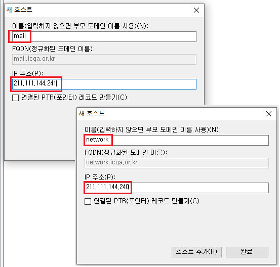 새호스트와 새별칭은 마우스 우클릭으로 추가할 수 있다.