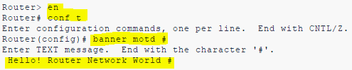 | > banner motd # | 배너 입력 (마지막에 #은 꼭 입력, 종료는 Ctrl+Z) ** 접속시 나오는 인삿말 기능 |