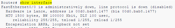 Router(config-if)# no shutdown (인터페이스 활성화명령어)