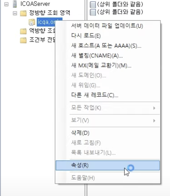 정방향 조회영역 우클릭 후 새 영역을 만들어주기