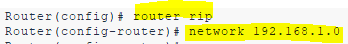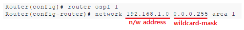 | > router ospf > network 192.168.1.0 0.0.0.255 area 1 |