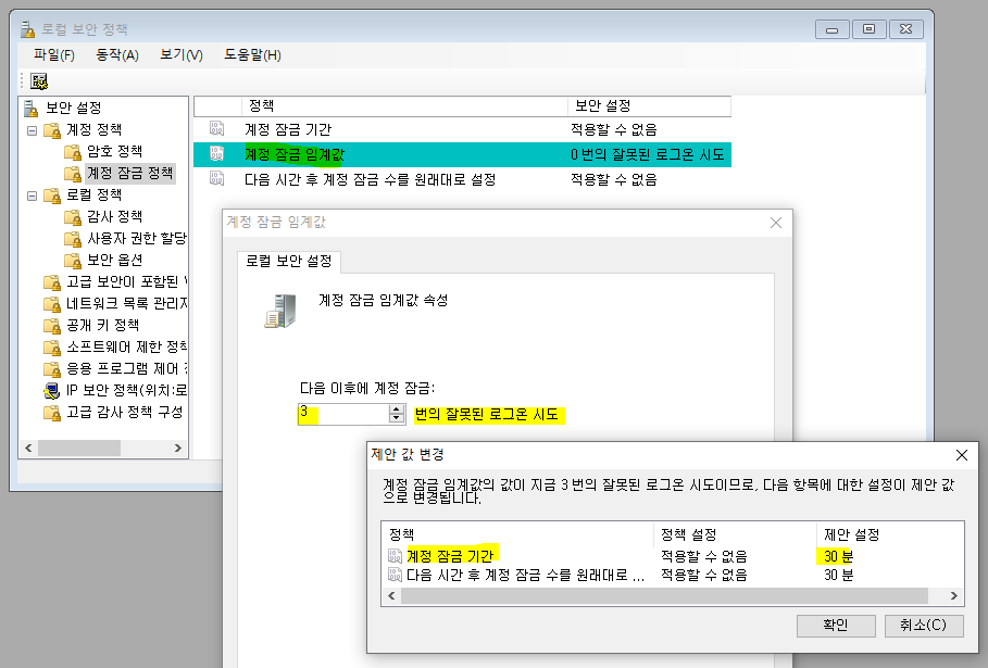 (패스워드는 최소 10일 - 최대 20일 사용 / 3번 로그인 실패시 30분간 계정잠금)
