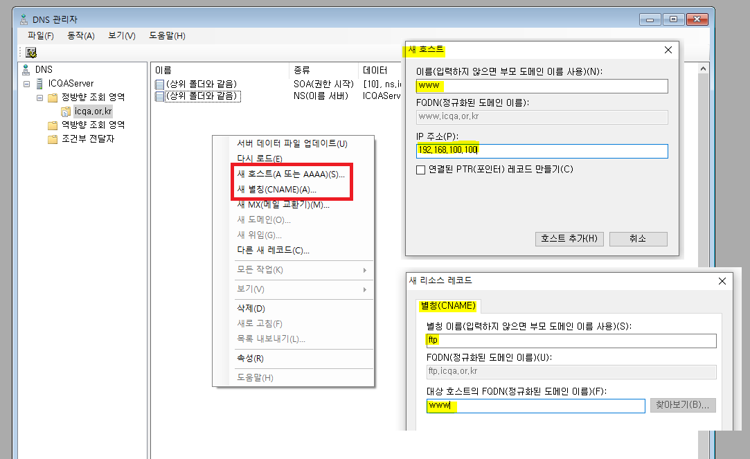 ftp (이름) in CNAME (별칭) www (호스트FQDN)