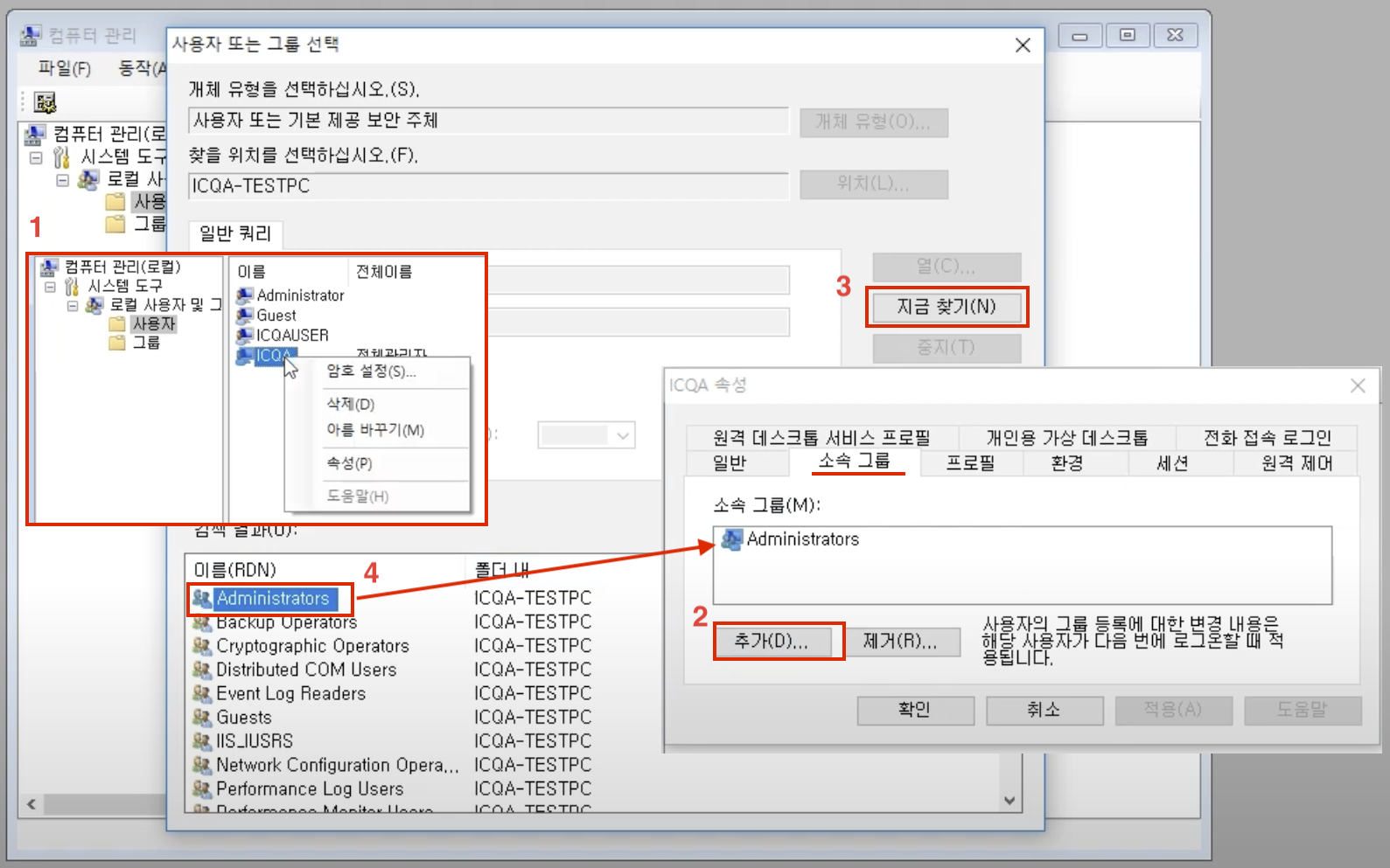 - 사용자 추가 후 속성의 소속그룹 탭에서 지정해준다