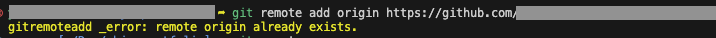 git remote add 명령어로 origin 이라는 이름의 원격저장소를 추가해 주려고 하였다.