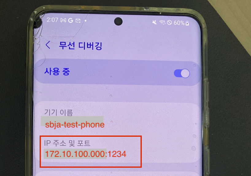 커넥트할때 사용되는 IP:PORT 번호 조합은 모바일 화면 상단에서 확인하자