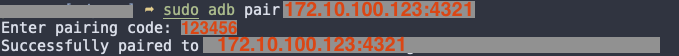 기기 페어링 창이 뜨고 6자리 페어링 코드와 IP 주소 및 포트가 나온다.