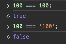 | === | a === b | a 와 b 는 값과 타입이 같다 |
