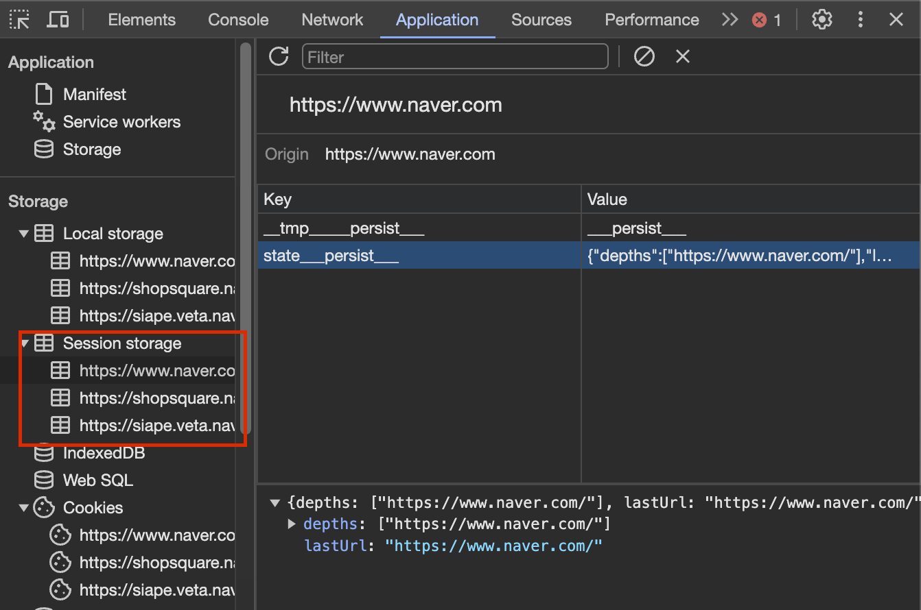 → Session Storage 는 브라우저 컨텍스트 내에서 생성되고 유지되기 때문에 별개의 영역으로 구분되어지기 때문이다