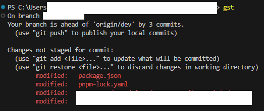 (아래 명령어는 git status 라는 명령어이고 gst 로 줄여진다)