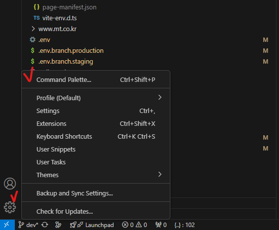 3. vscode - 왼쪽하단의 설정버튼 - Command Palette 클릭해주기