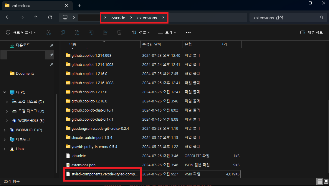 vscode extension 을 vscode 내부에서 설치했었는데, 이번에 오프라인으로 설치해보고자 한다 :)