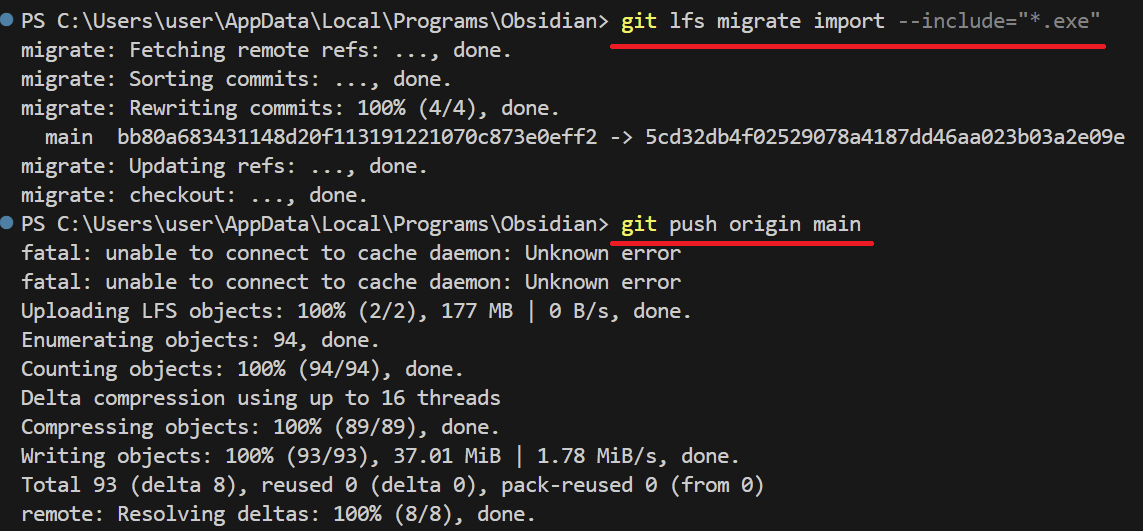 remote: error: File Obsidian.exe is 168.57 MB; this exceeds GitHub's file size limit of 100.00 MB