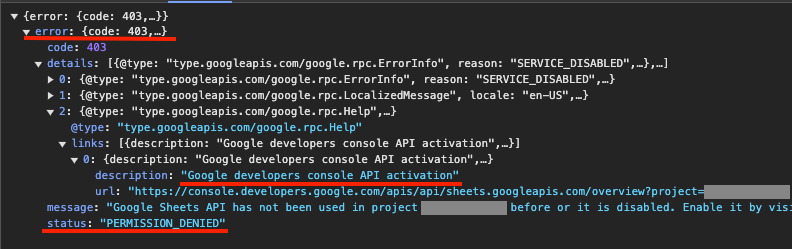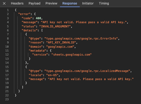 구글 스프리드 시트 API 연동 에러 - "API key not valid. Please pass a valid API key."