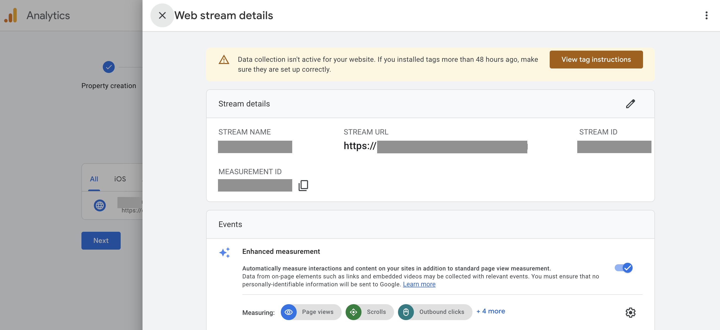 5. property 가 생성되었다. 여기서 나는 measurement ID 가 필요하니 copy 를 해주자!