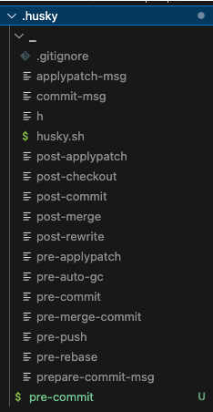 일단 init 명령어를 실행하면 .husky 라는 폴더가 루트디렉터리에 생성된다.