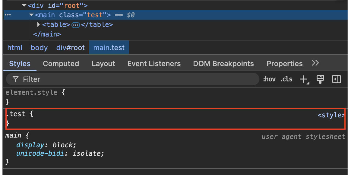 요렇게 임포트하고 App 에서 태그에 test 클래스를 주어보았다.