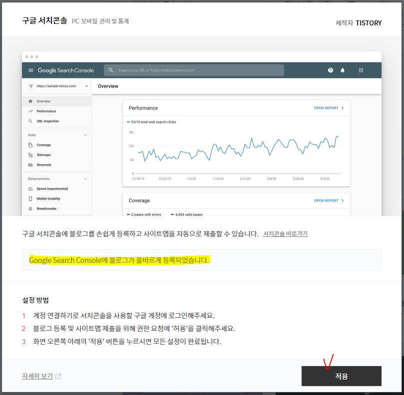 6. 노란줄 친 메시지가 우리를 반긴다. [적용] 누르면 완료!