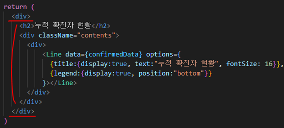 return의 내용을 다음과 같이 하나의 태그로 묶어서 해결했다.