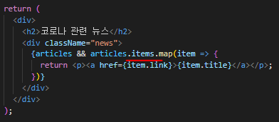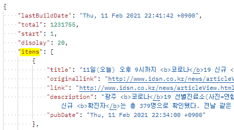 뉴스 json 데이터를 가져왔으니 기사 전체목록(오브젝트)에서 개별 기사(배열)로 한단계 더 들어가야 한다.