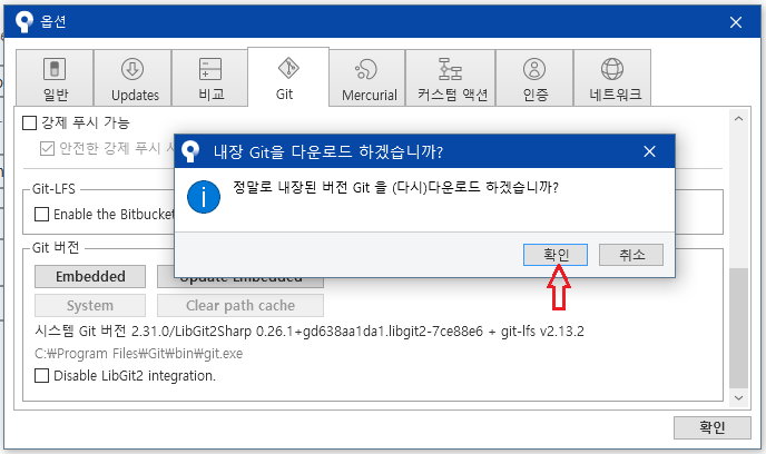 3. 스크롤로 쭈 ~ 욱 내려가서, Git 버전 - Update Embedded 선택하기