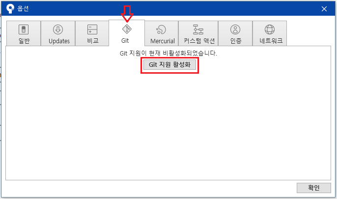 2. 옵션 - Git - Git 지원활성화 선택하기