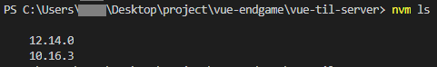 2. nvm ls 명령어로 노드 설치가 잘 됬는지 확인 (노드는 제대로 잘 설치되었다.)