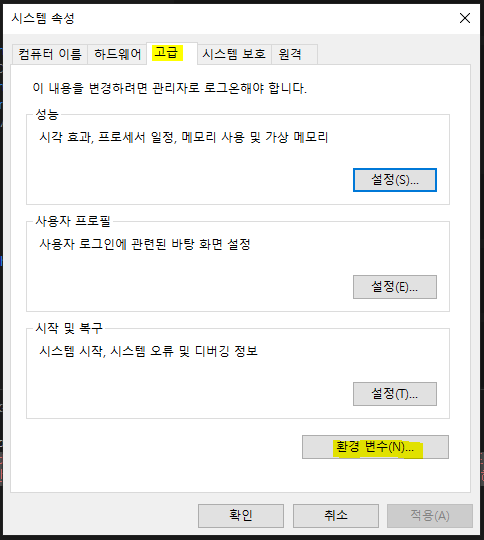 1차 시도) 환경변수 경로 설정문제인가?