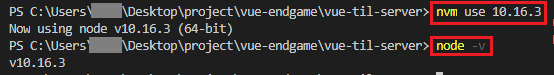 nvm use 노드버전#