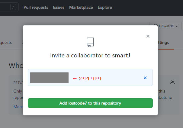 공유할 유저의 깃헙 아이디