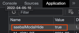 위에서 선언한 cookie 값 (saebalModalHide) 없을 때만 보여주자